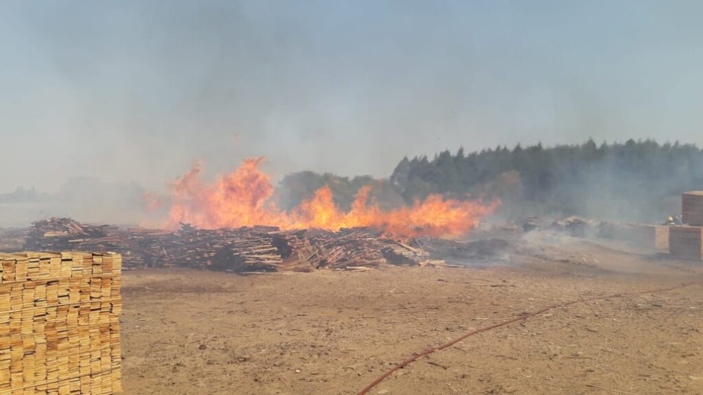Es que ante la cantidad de biomasa que tienen en los aserraderos se comenzaron a producir constantes incendios y los productores forestales terminan perdiendo toda la materia prima. En la tarde de hoy, se produjo un incendio de los aserraderos que se logró controlar y las pérdidas son árboles de materia prima, debido al fuerte viento y la irresponsabilidad de la gente.