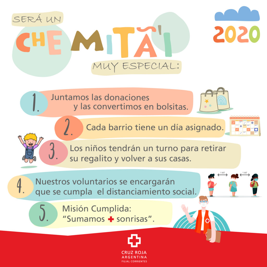 Mariela Contreras, Presidente de Cruz Roja Argentina Filial Corrientes, dijo “es un mes muy especial para los más chicos, por eso decidimos hacer algo diferente, respetando los protocolos sanitarios, con la idea de juntar muchos regalos para sumar sonrisas”.
