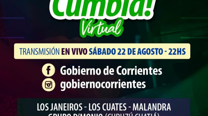 Este sábado 22 de agosto, se llevará a cabo una nueva cita de buena música que ofrecerá el gobierno provincial de manera virtual, con el que ya se ha convertido en un encuentro habitual de los fines de semana para todos los correntinos como es el “Corrientes Cumbia”.