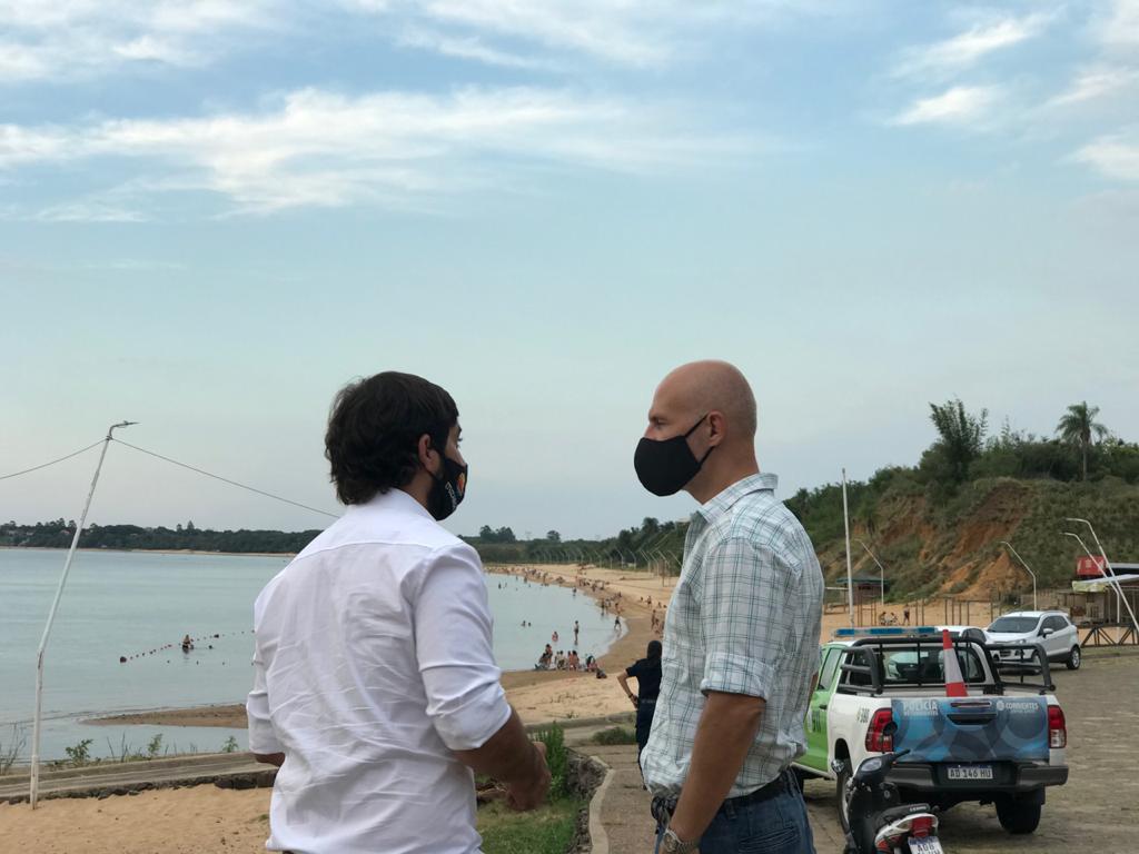 Las autoridades también visitaron una de las playas de la localidad correntina, que en la jornada de este sábado tuvo un importante movimiento de bañistas, siguiendo los protocolos establecidos por el municipio y las autoridades sanitarias de la Provincia.