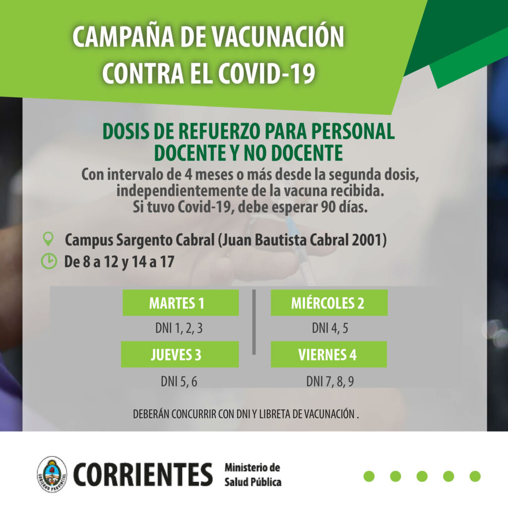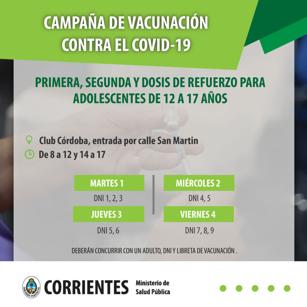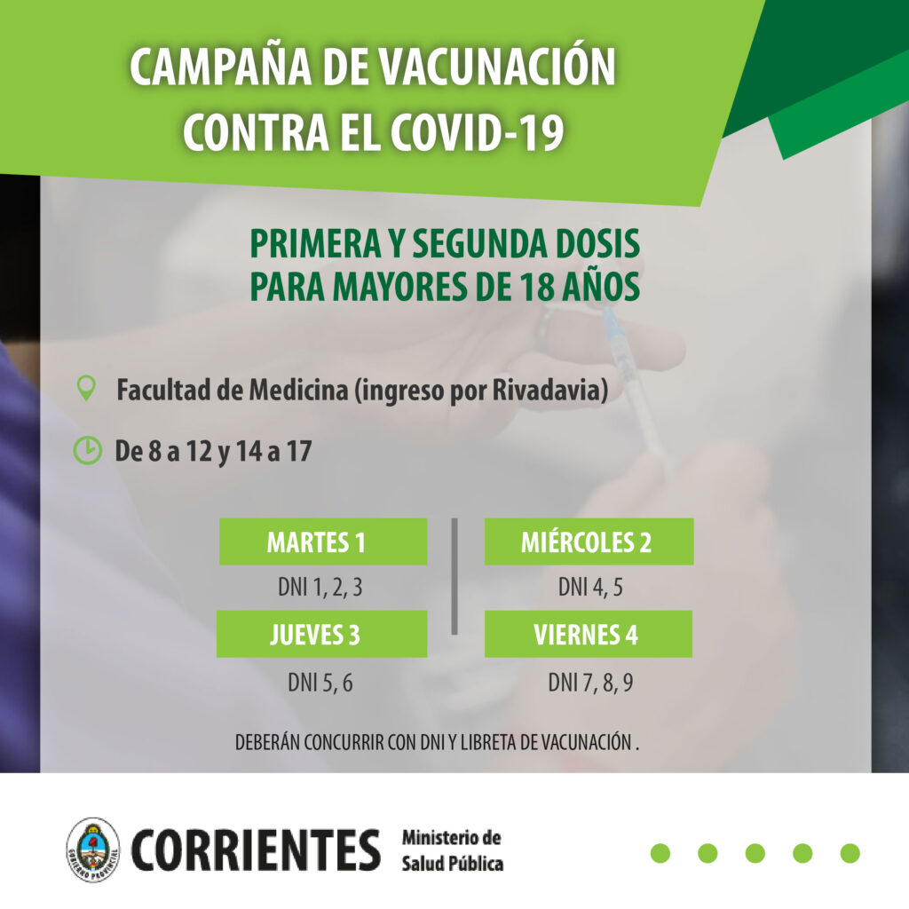 Durante la semana se iniciarán, completarán y reforzarán esquemas. Será en los puntos de vacunación designados, por terminación de DNI. Se recuerda concurrir el día correspondiente con carnet y DNI.