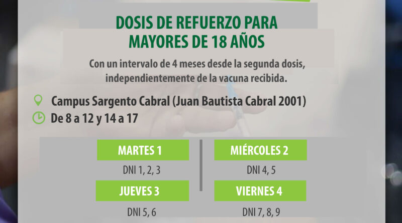 Durante la semana se iniciarán, completarán y reforzarán esquemas. Será en los puntos de vacunación designados, por terminación de DNI. Se recuerda concurrir el día correspondiente con carnet y DNI.