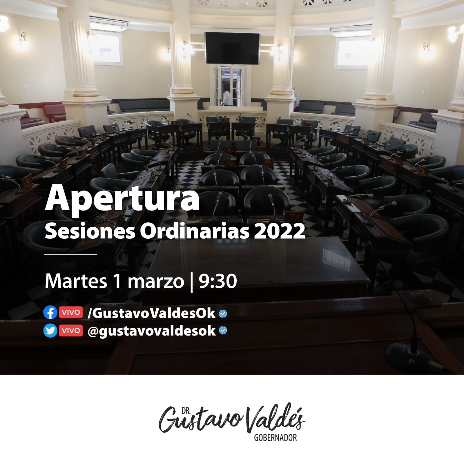 Este martes 1 de marzo, a las 9,30, el gobernador de Corrientes, Gustavo Valdés, pronunciará su discurso ante la Asamblea Legislativa, informando sobre el estado de la Administración, realizará el balance de la gestión del año pasado y trazará las metas para este 2022, dejando inaugurado así el período de sesiones ordinarias de la Legislatura Provincial.