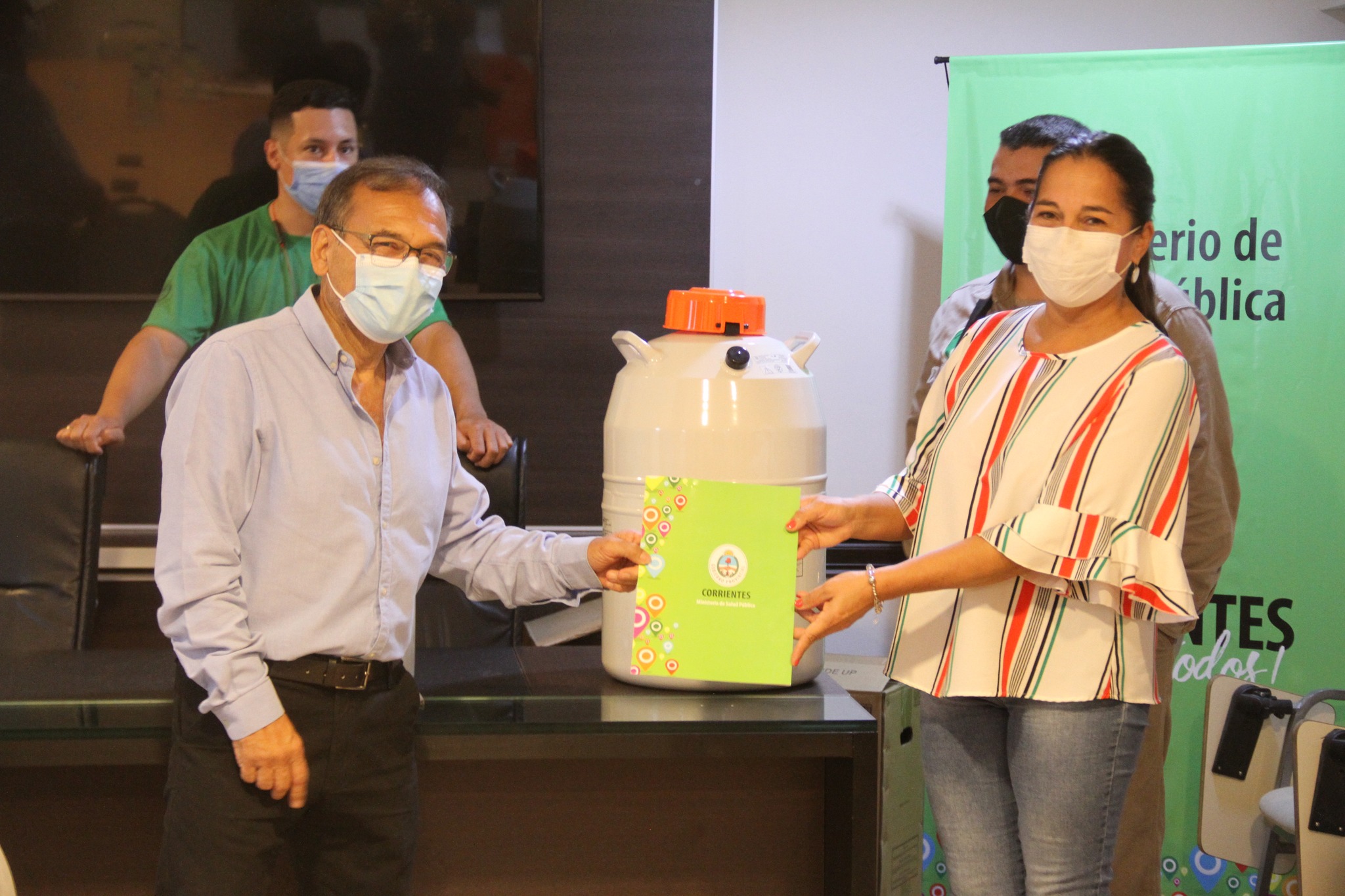 El ministro de Salud Pública de la Provincia, Ricardo Cardozo, entregó hoy a la Dirección de Control de Enfermedades Vectoriales y Zoonosis dos Termos de Nitrógeno Líquido, equipos fundamentales para la vigilancia de la Fiebre Amarilla.