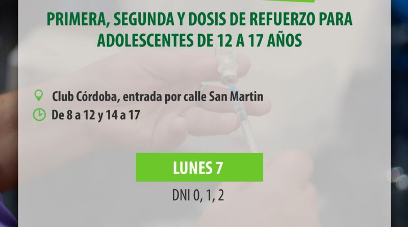 Será para las terminaciones de DNI 0-1-2 de 8 a 12 y de 14 a 17, en los lugares designados según grupo etario.