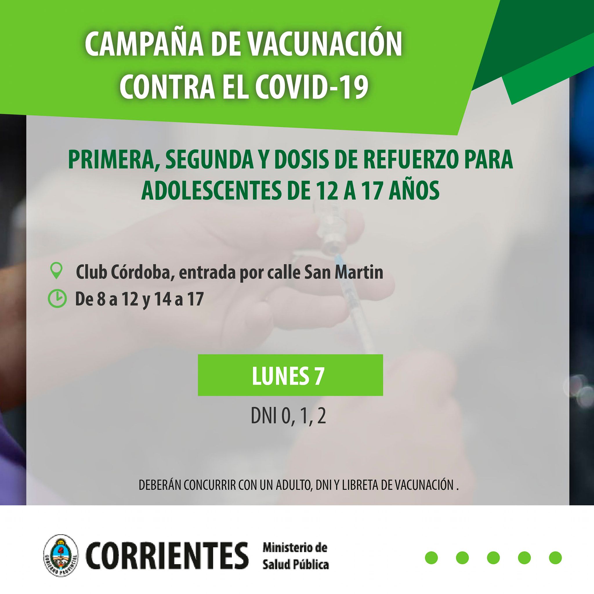 El Ministerio de Salud Pública a través de la Dirección de Inmunizaciones, continúa con la campaña de vacunación contra el Covid-19. Este lunes 7 de marzo se iniciarán, completarán y reforzarán esquemas en los puntos designados. El cronograma continuará durante la semana según terminaciones de DNI .