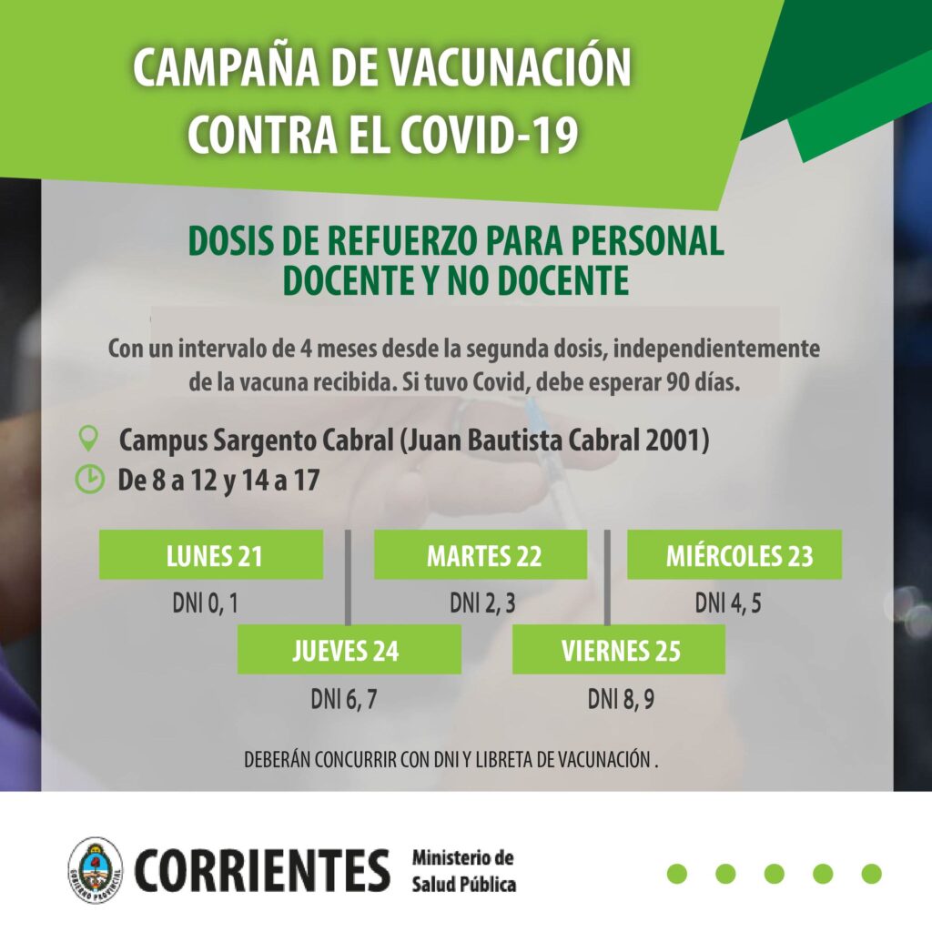 DOSIS DE REFUERZO PARA PERSONAL DOCENTE Y NO DOCENTE