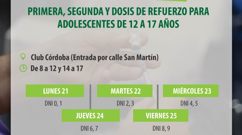 PRIMERA, SEGUNDA Y DOSIS DE REFUERZO PARA ADOLESCENTES DE 12 A 17 AÑOS