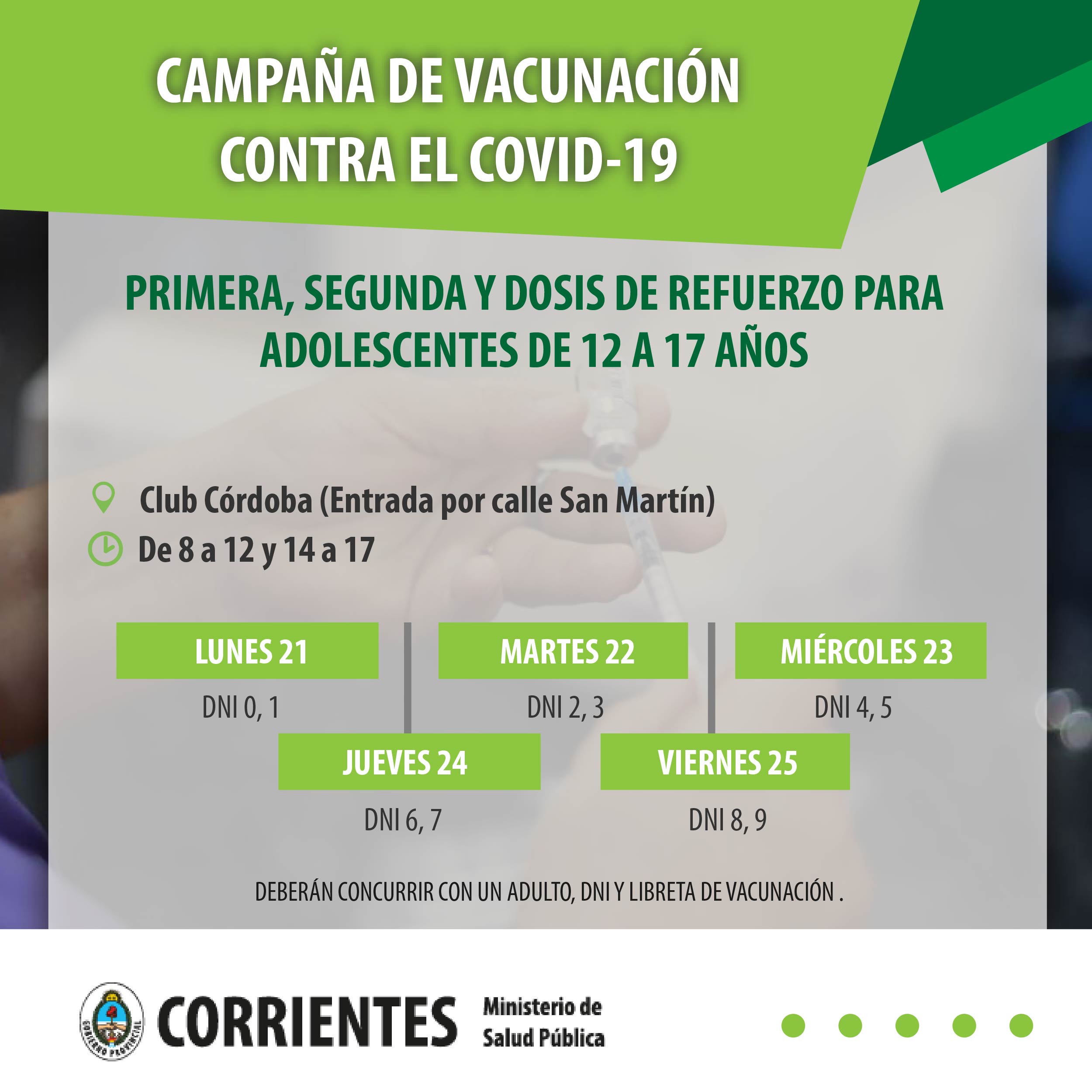 El Ministerio de Salud Pública a través de la Dirección de Inmunizaciones, continúa con la campaña de vacunación contra el Covid-19. Desde el lunes hasta el viernes iniciarán, completarán y reforzarán esquemas. Será por terminación de DNI en los lugares designados según grupo etario.