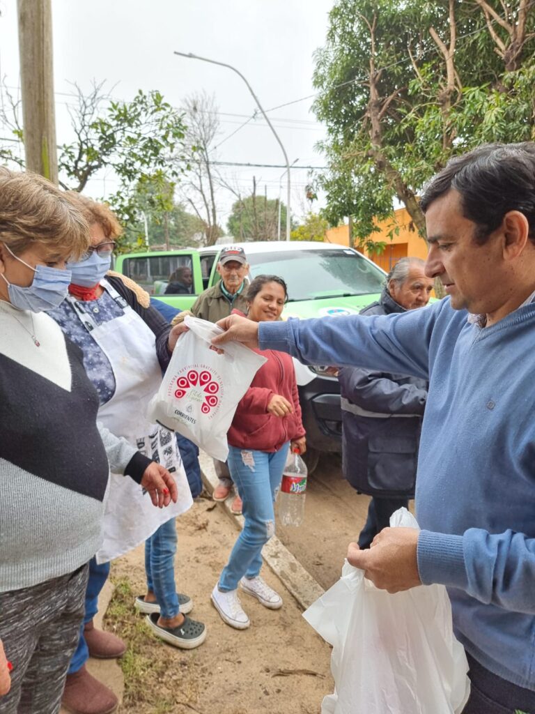El secretario de Acción Social, Diego Benítez, y el director, Sebastián Velarde, junto a su equipo acompañaron en la actividad, llegando a los barrios San Jorge, Virgen de Itatí y Bernardino Valle, donde se encuentran comedores municipales.