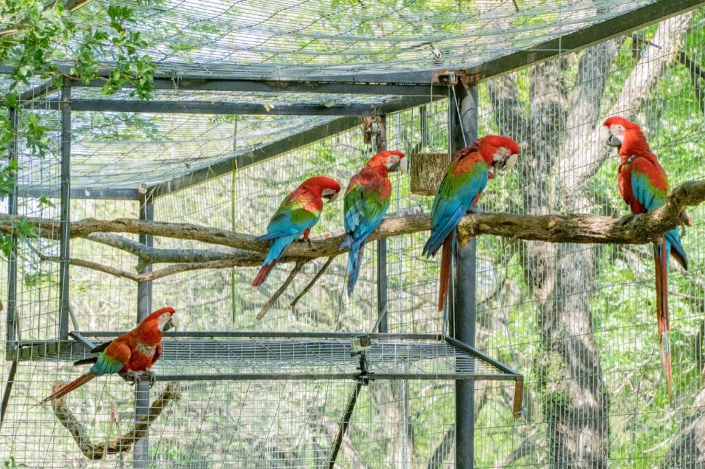 La vida de estos guacamayos rojos inicia en Escobar, Provincia de Buenos Aires. Aquí, en el BioParque Temaikèn, se emparejaron a los progenitores y luego se supervisó el correcto desarrollo de los pichones, que son criados exclusivamente para el proyecto de reintroducción de la especie en Iberá. Luego estos individuos pasaron un período de cuarentena y entrenamiento de vuelo en nuestras instalaciones del Centro de Conservación Aguará, en Paso de la Patria, Corrientes.