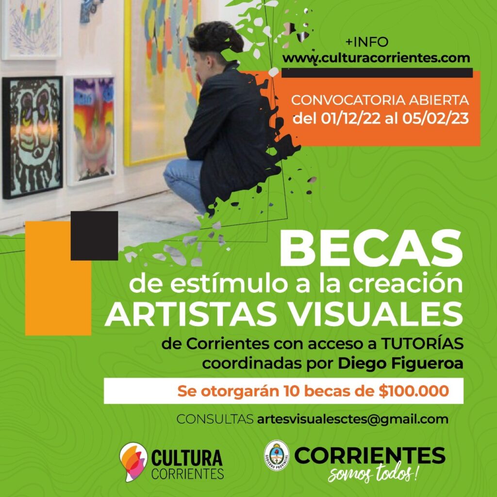 El Instituto de Cultura de Corrientes (ICC), en su política de acompañamiento y fortalecimiento a los artistas, otorgará becas de estímulo a la creación con acceso a tutorías, a 10 artistas visuales residentes en la provincia. Los seleccionados recibirán $100.000 para el desarrollo creativo de su producción y la compra de materiales e insumos.
