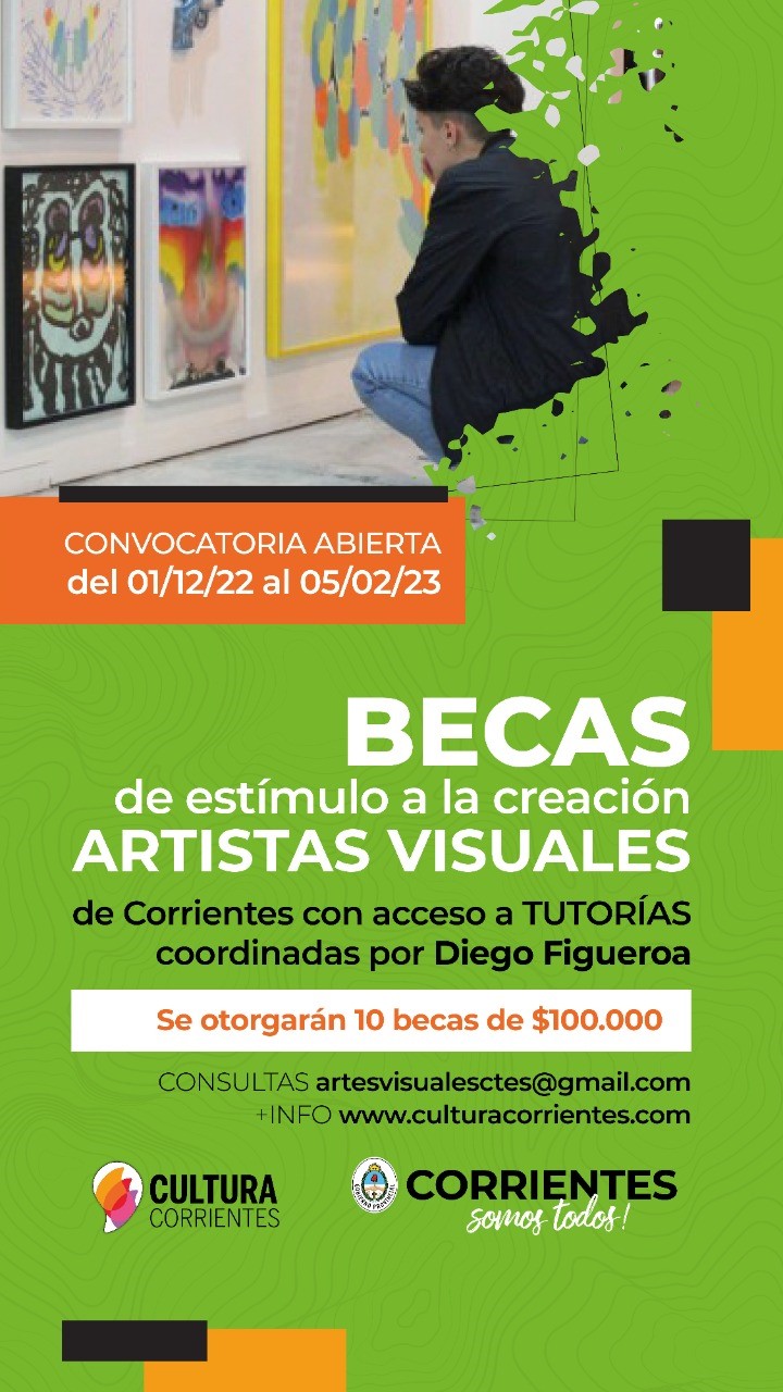 El Instituto de Cultura de Corrientes (ICC), en su política de acompañamiento y fortalecimiento a los artistas, otorgará becas de estímulo a la creación con acceso a tutorías, a 10 artistas visuales residentes en la provincia. Los seleccionados recibirán $100.000 para el desarrollo creativo de su producción y la compra de materiales e insumos.