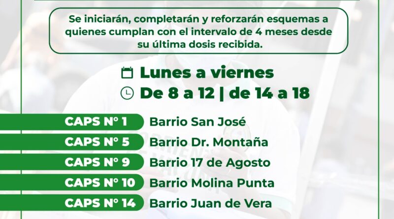 Se iniciarán, completarán y reforzarán esquemas a quienes cumplen con el intervalo de 4 meses desde la última dosis recibida.