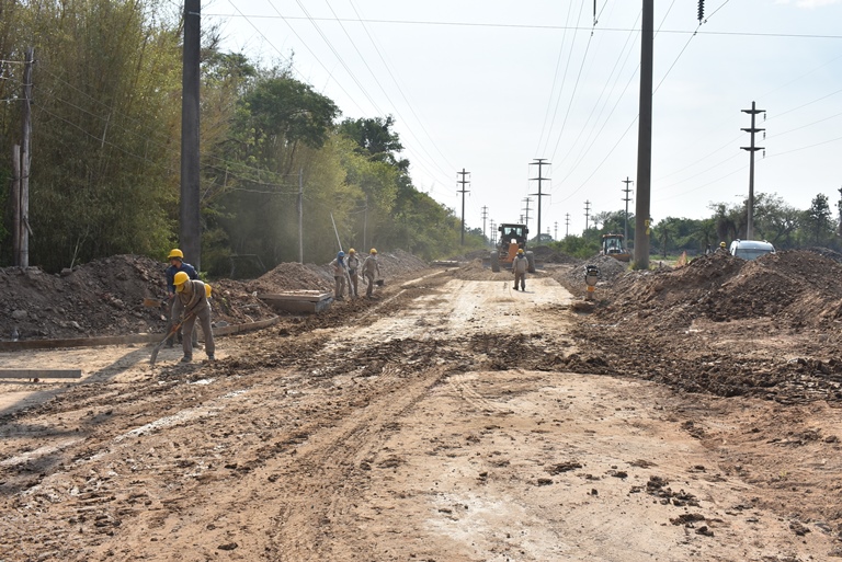 Los trabajos para su pavimentación comenzaron con el desbosque, destronque y limpieza del terreno y una vez finalizada la apertura de caja, se procedió a la compactación y perfilado de la misma a la vez que se avanzó en la construcción de desagües pluviales con tendidos de cañería de 0.80 de diámetro en toda su extensión, más la construcción de sumideros que garantizan el normal escurrimiento de las aguas pluviales.