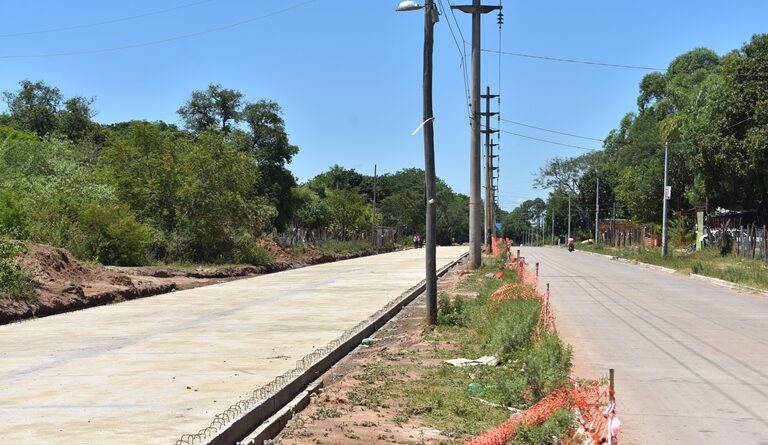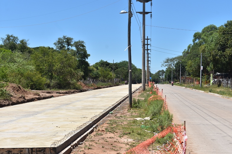 Los trabajos para su pavimentación comenzaron con el desbosque, destronque y limpieza del terreno y una vez finalizada la apertura de caja, se procedió a la compactación y perfilado de la misma a la vez que se avanzó en la construcción de desagües pluviales con tendidos de cañería de 0.80 de diámetro en toda su extensión, más la construcción de sumideros que garantizan el normal escurrimiento de las aguas pluviales.