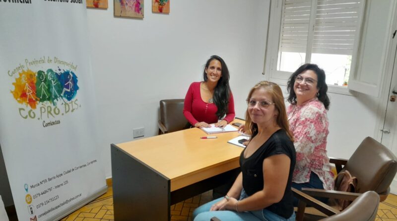 La Prof. Roxana Tannuri a cargo del COPRODIS Consejo Provincial de Discapacidad se reunió con las Directoras de Discapacidad de Saladas Prof. Nancy Pujol este jueves 16 y con la Directora de Santa Ana Lic. Marcela Colaneri este viernes 17 a fin de armar agenda y planificar capacitaciones junto a su coordinadora Tec. Tatiana Lickiewicz.