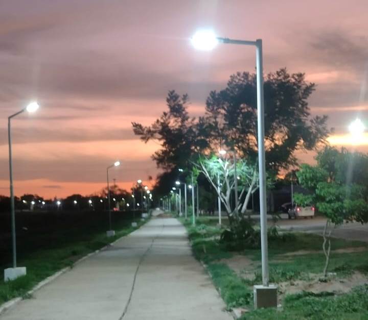Actualmente, la obra se encuentra en un 30% de avance y se continúa con trabajos de contrapiso e instalación eléctrica, como ser tendido de cable subterráneo, colocación de las luminarias, cruces de calles, nuevos tableros eléctricos.