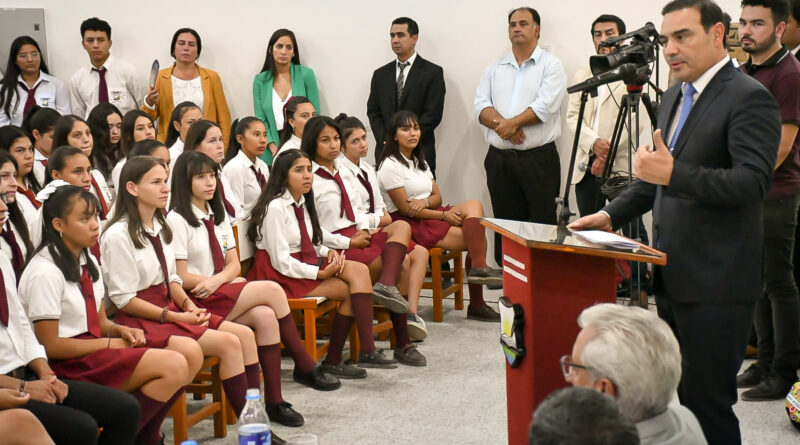 Por otra parte, el Gobernador recordó que “me comprometí con este establecimiento a refaccionarla y por eso invertimos 50 millones de pesos”. Y ahora, anunció que “vamos a invertir 100 millones de pesos más, para hacer ese playón deportivo cubierto que es tan necesario para esta escuela emblemática de la ciudad”.