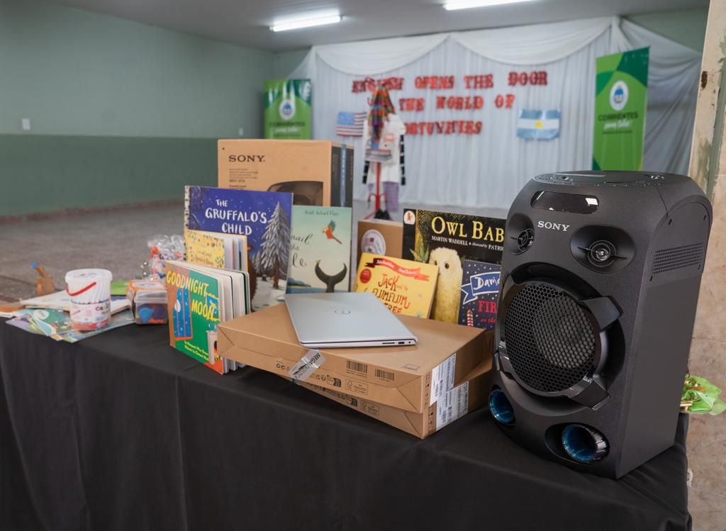 Por su parte el Embajador Stanley insto a los alumnos a cumplir sus objetivos: “A veces uno tiene una idea y si ejecuta la idea puede llegar a algo muy interesante, no todas las ideas son buenas, ni tampoco todas las ideas son malas y cada vez que uno tiene que tomar una decisión en la vida se tiene que preguntar si es algo bueno o malo, pero ustedes tienen el poder de decidir cuáles son las ideas que quieren seguir. Quizás algún día haya un embajador en Estados Unidos que venga a mostrar un proyecto de Corrientes, y el embajador de Argentina en EEUU diga, hubo un chico en Corrientes que tuvo esta idea y este fue un chico que cambio el mundo. La otra lección que les quiero transmitir es la importancia de entender al otro, ahora ustedes tienen clases de inglés, y yo estoy tomando clases de español y lo que tienen que aprender es que nuestros países son muy parecidos, somos naciones de inmigrantes que vinieron de Europa la mayoría. Quisiera plantarles una idea, que piensen lo bueno que sería para ustedes y nosotros, poder pasar seis meses o un año en Estados Unidos, nuestra Embajada ayuda a lograr estos programas, todos estos ex becarios que están aquí presentes son personas que participaron de programas de intercambio y que viajaron a Estados Unidos. El inglés los va a ayudar en todo lo quieran hacer en la vida, si deciden ser programadores, electricistas, médicos, el inglés siempre los va a ayudar, les juro que no es una pérdida de tiempo, estamos muy orgullosos de donarles los útiles, computadora, los van a conectar con el mundo”.