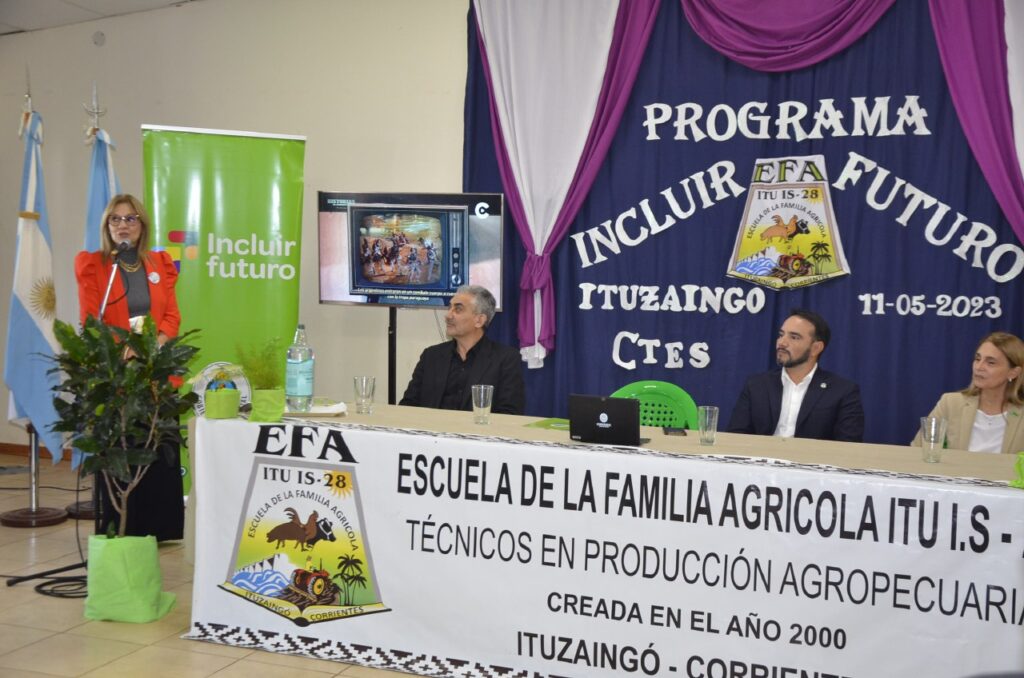 El Gobierno de la Provincia de Corrientes a través del Ministerio de Educación, realizó este jueves la entrega de Netbooks en el marco del Programa Incluir Futuro, a diferentes instituciones educativas de Ituzaingó. La titular de la mencionada cartera, Práxedes López, presidió los diferentes actos que se realizaron: la primera entrega de los dispositivos electrónicos tuvo lugar en el colegio Secundario «Doña María Haydee Galarza», de Villa Olivari, luego las autoridades educativas se trasladaron a la Escuela de la Familia Agrícola (EFA) ITU IS 28, de Rincón Santa María, Departamento de Ituzaingó.