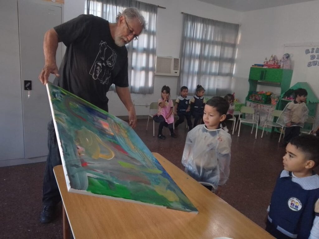 Algunos centros de desarrollos infantil están siendo acompañados en este proceso de elaboración de su obra por artistas correntinos como es el caso de José Kura que viene acompañando a los niños del CDI Niños Felices en la realización de la obra que van a exponer.