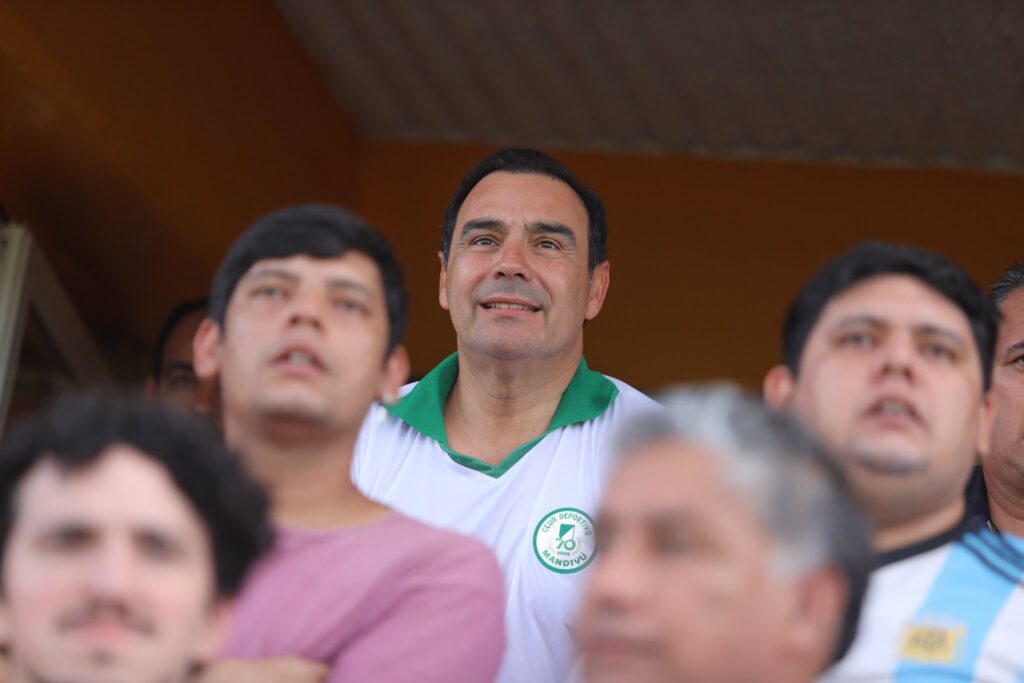 En la ocasión estuvo acompañado del vicegobernador Pedro Braillard Poccard; los intendentes de Corrientes y Monte Caseros, Eduardo Tassano y Juan Carlos Alvarez; el presidente del Club Deportivo Mandiyú, José María Beibegder; el presidente de la Federación Correntina de Fútbol, Pablo Alonso y el secretario de Deportes, Jorge Terrile.