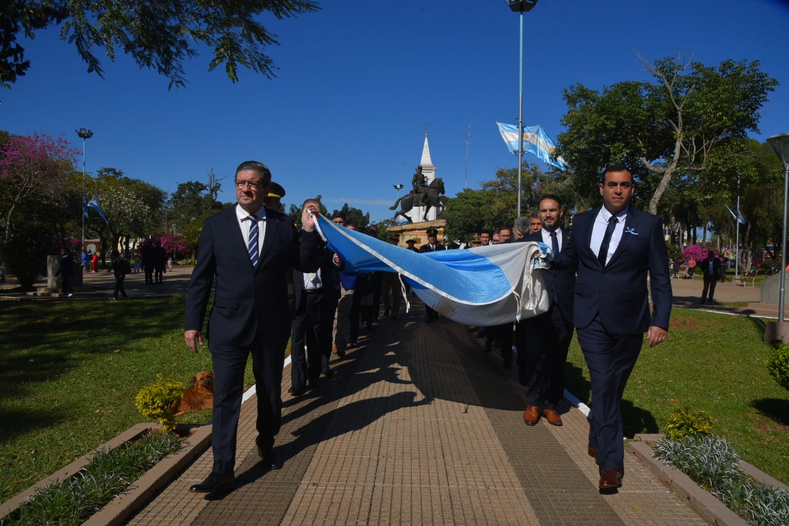 Ante la comunidad presente, antes del desfile cívico-militar, el Intendente Suaid recordó el origen de la ciudad, haciendo un paralelo con la construcción del estado argentino: “Como cada 27 de agosto de cada año, nos reunimos en esta plaza San Martín, corazón de esta ciudad jesuísito-guaraní. En esta ciudad que fue creciendo, mirando al río Uruguay, cuando este era parte de una vía navegable por donde se trasladaba la riqueza que se producía en toda su cuenca. La ciudad que después se integró al sistema de ferrocarriles que tenía línea directa con el puerto”. Momentos de construcción de la Nación, con imperio de la Constitución Nacional y la educación pública como garantía de desarrollo, que establecía acuerdos básicos para crecer en paz y prosperidad. “Cuando Sarmiento afianzaba la idea de que el desarrollo pasa inexorablemente por la educación y establecía la Ley 1420. En esa etapa la Argentina se convirtió en uno de los países más prósperos de la tierra. Donde Corrientes crecía y en esta parte de la provincia, con una fisonomía particular y un intenso intercambio con nuestros hermanos brasileños”.