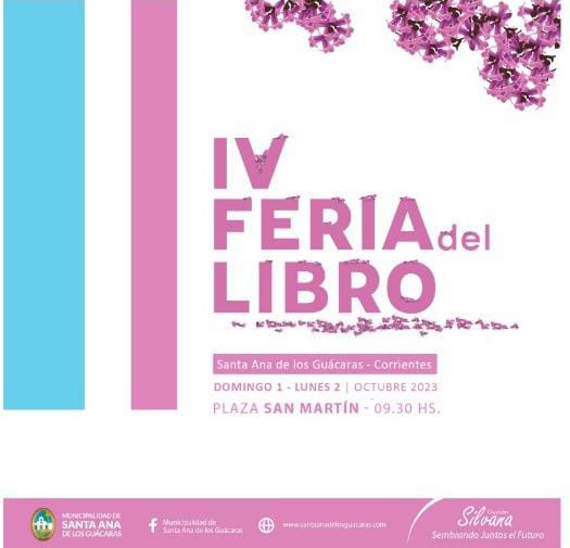 Vale mencionar que estarán presentes importantes editoriales que contarán con interesantes ejemplares con una gran diversidad de temáticas según las preferencias de los lectores. En esta Feria del Libro habrá stands de emprendedores, artesanos locales con diversos productos y puestos gastronómicos que contarán con comidas típicas para comercializar especialmente el día de Karaí octubre. En el predio de la Feria se expondrán las obras de Julio Argentino Tamaño realizadas con acrílicos que representan búsquedas personales que combinan la abstracción con elementos figurativos con creación libre. Para conocer la programación pueden ingresar a las redes sociales: Instagram: Municipalidad Santa Ana, Ctes.@muni_santaana_ctes Instagram: Dirección de Cultura y Turismo @turismoycultura_santaanaFacebook Municipalidad de Santa Anahttps://www.facebook.com/MuniSantaAnaDeLosGuacarasFacebook Casa de la Culturahttps://www.facebook.com/profile.php?id=100082582615159