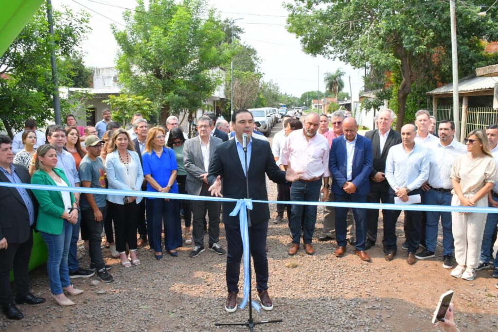 En primer término, en la intersección de los pasajes Las Flores y Campana, del barrio Pío X, el mandatario encabezó la inauguración de 25 cuadras de cordón cuneta, badenes y enripiado.