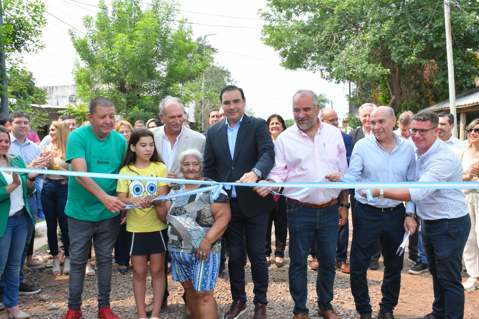 En primer término, en la intersección de los pasajes Las Flores y Campana, del barrio Pío X, el mandatario encabezó la inauguración de 25 cuadras de cordón cuneta, badenes y enripiado.