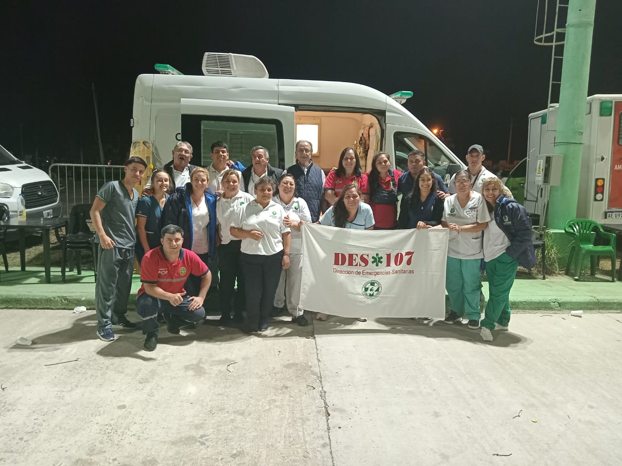 Para el trabajo, la Dirección de Operativos Sanitarios dispuso de cuatro consultorios móviles y dos ambulancias de traslados; y, a la DES, dos ambulancias de traslados. Fueron entre 35 y 40 agentes de salud entre la DES y la Dirección de Operativos Sanitarios, que trabajaron durante todas las noches.