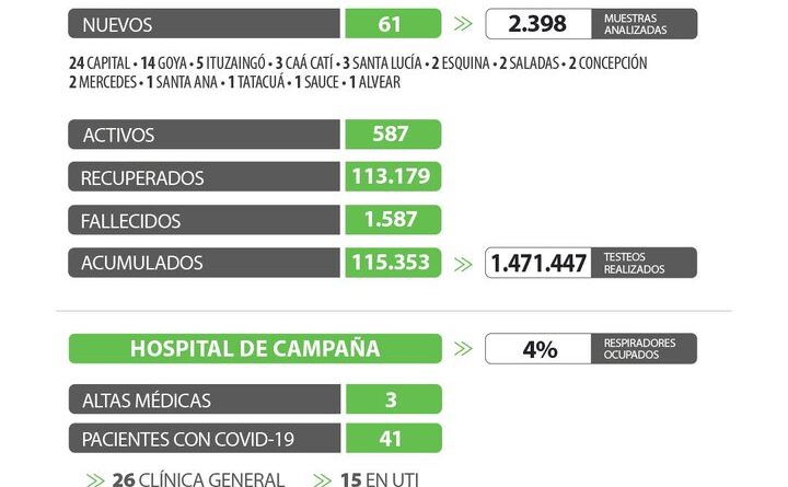 Leer másEl informe epidemiológico de la provincia de Corrientes registró este domingo, 61 nuevos casos positivos de Coronavirus, de los cuales